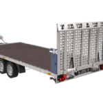Ausgestattet mit durchgehenden Zurrlöchern und -bügeln, Seilwinde mit Bremse und Heavy-Duty Bugrad (500 kg). Tandemachse mit 13-Zoll-Rädern, 13-poliger Stecker und 3.500 kg Gesamtgewicht. Bodenhöhe: 63 cm (10 Zoll) bzw. 66 cm (13 Zoll).
