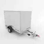 Eingebauter Anhänger für den Transport von Gütern, die einen besonderen Schutz von außen benötigen. Innen mit einem Blatt mit Löchern zur Sicherung der Ladung mit Förderbändern ausgestattet. Wasserdichte Innenwände aus wasserfestem Sperrholz, mit Silikon versiegelt. Doppelte Tür mit Schlüsselschloss als Standard. Möglichkeit, die Türen durch eine Auffahrrampe zu ersetzen.